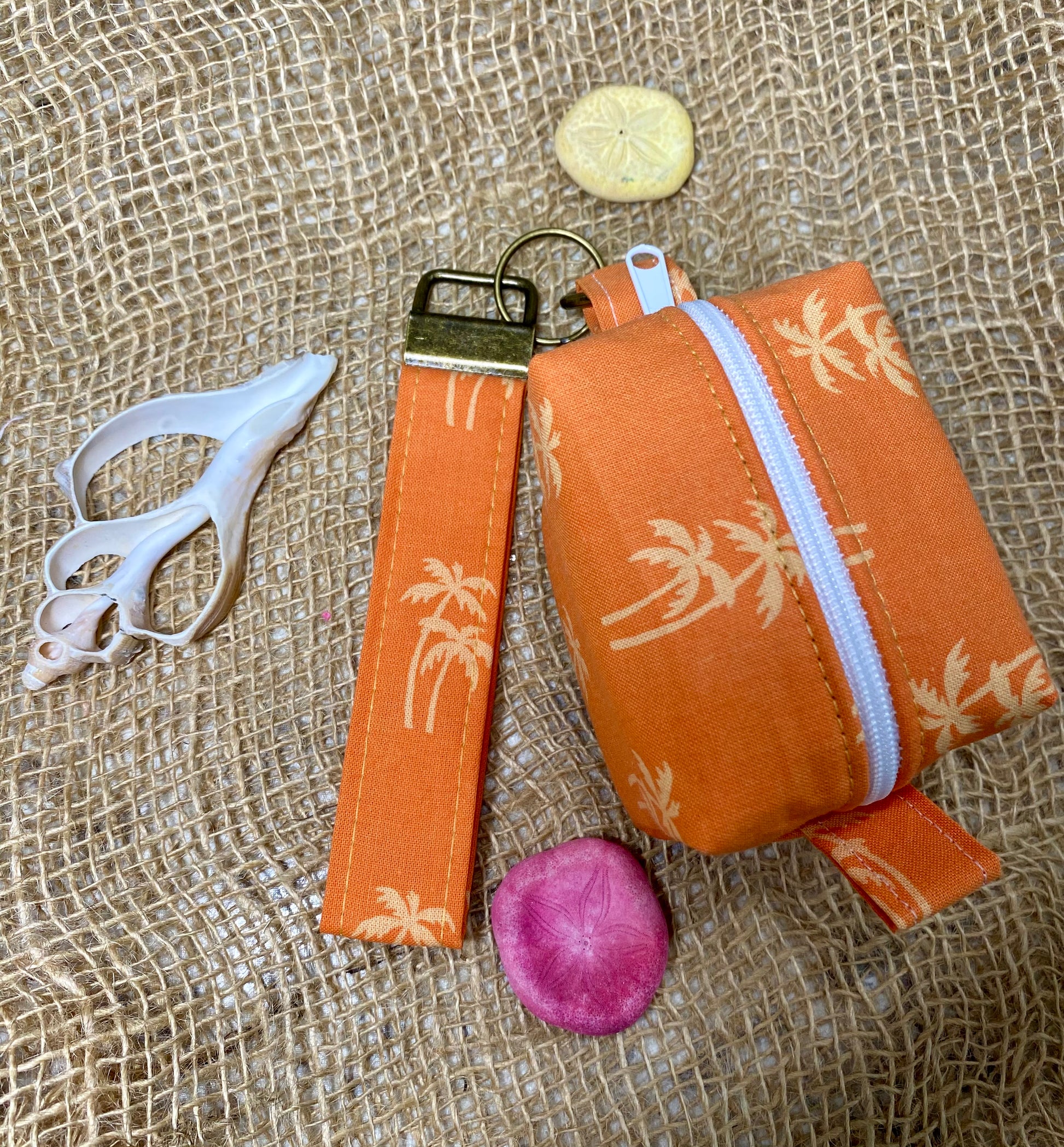 Keep your keys stylish and secure with this charming keychain wrist strap. Featuring golden palm trees on bold orange, it adds a fun splash of seaside charm to your day. The strap is finished with antique bronze hardware and is the perfect accessory for keeping your essentials organized and always within reach.