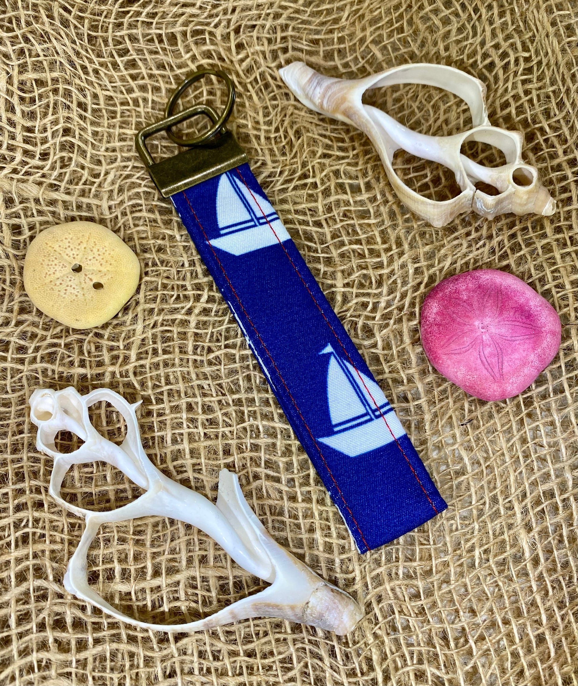 Set sail with a pop of nautical color! The Navy Sails Key Strap is a sturdy accessory that perfectly captures a coastal-patriotic style.