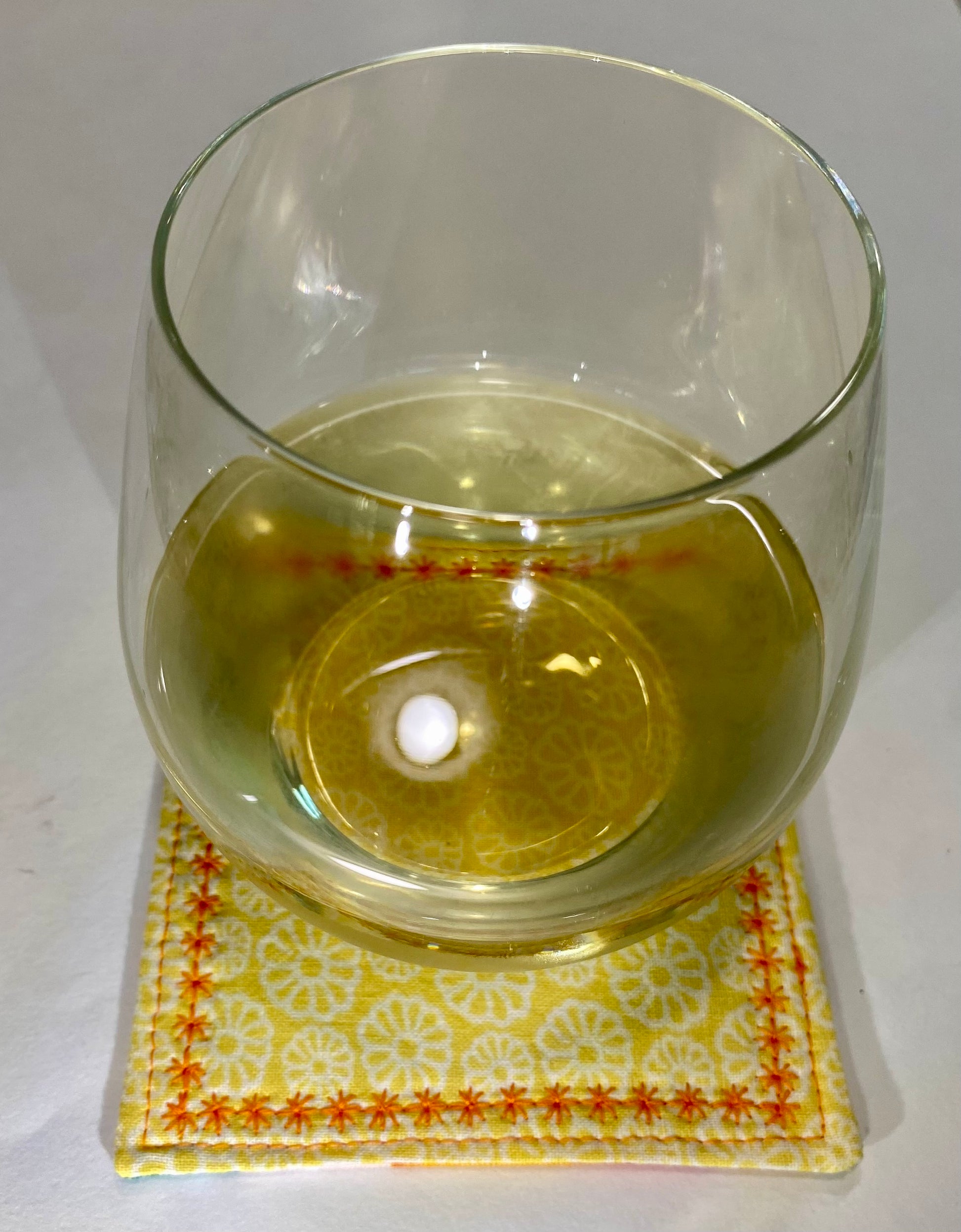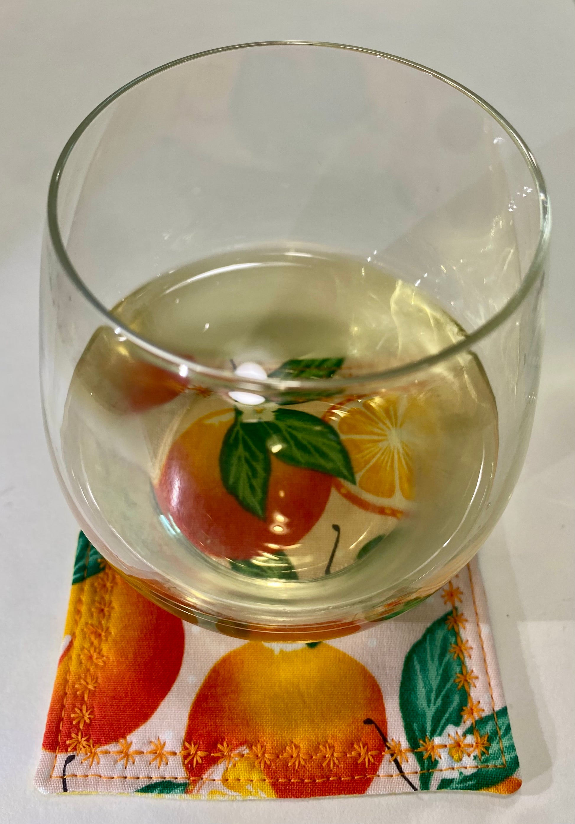 Bring the fresh, zesty feeling of a Florida orange grove right into your home with the Sunshine & Citrus Reversible Quilted Coaster Set!